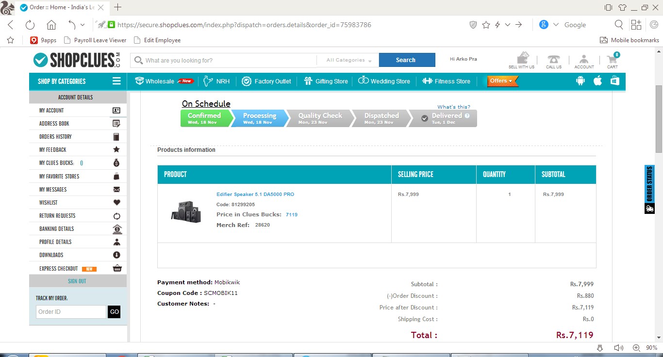 I bought it at IT GAIN computers at s.p road, Bangalore. Its a shop somewhat opposite to ankit. Its a small shop filled with too many people on saturday. The young chap who sold me the speakers refused to come down from Rs 8250. Its inclusive of tax (393 Rupees VAT!)