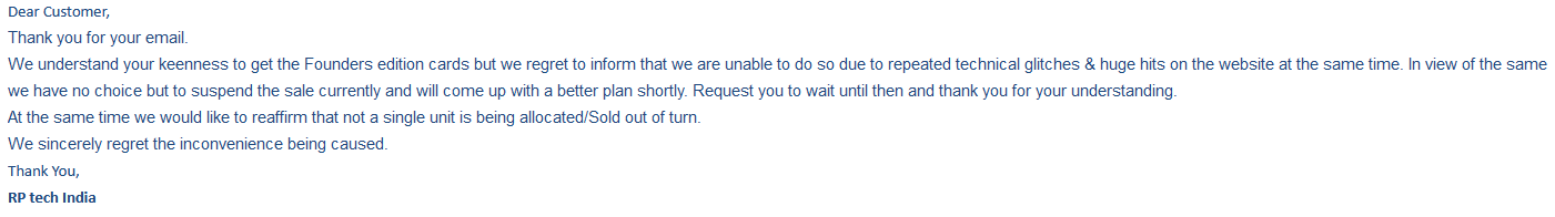 I even emailed them and once they told there will be a Sale . Now reading from your email i understand that it got cancelled and thats why I didnt find any buy button even after getting logged in.